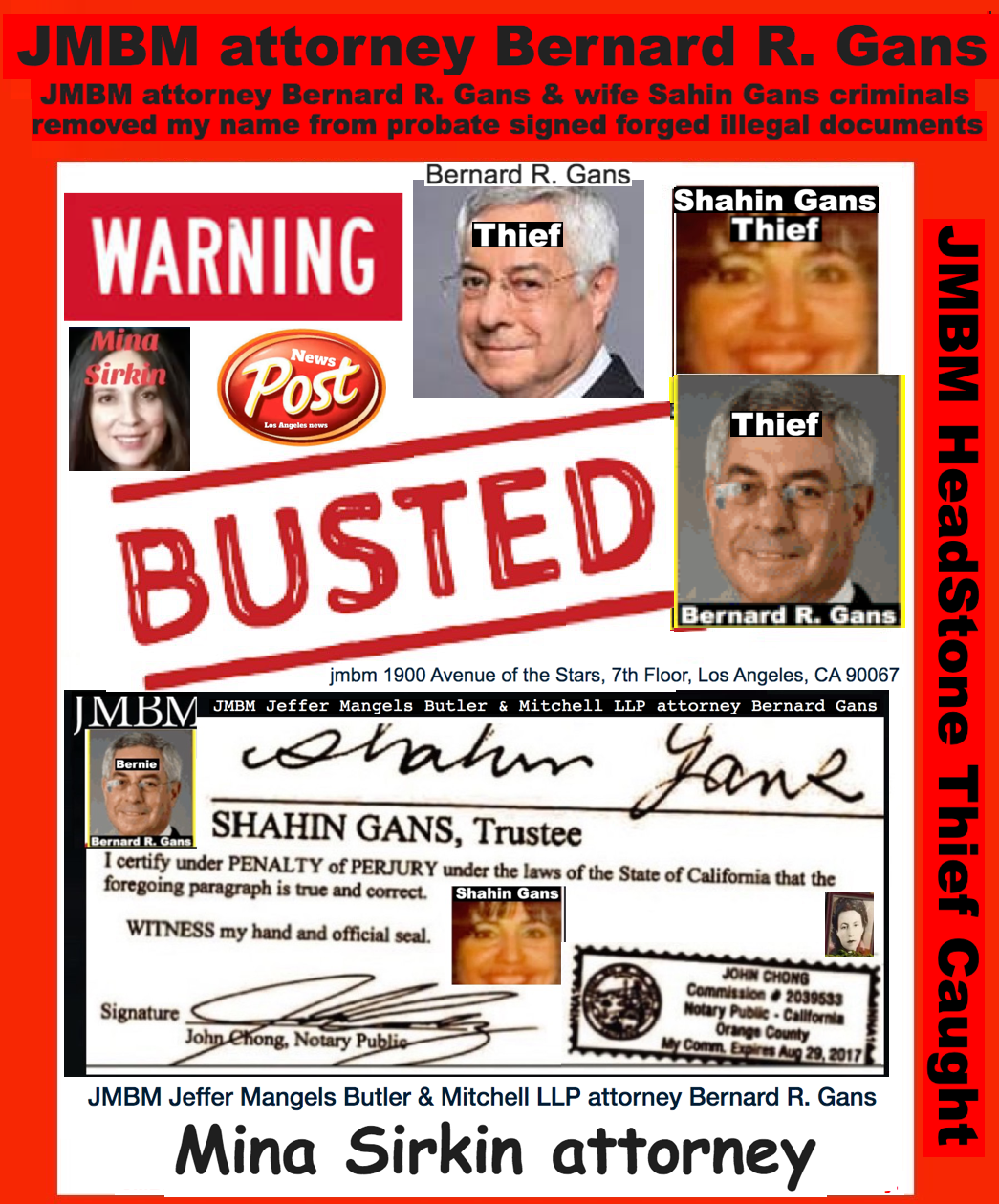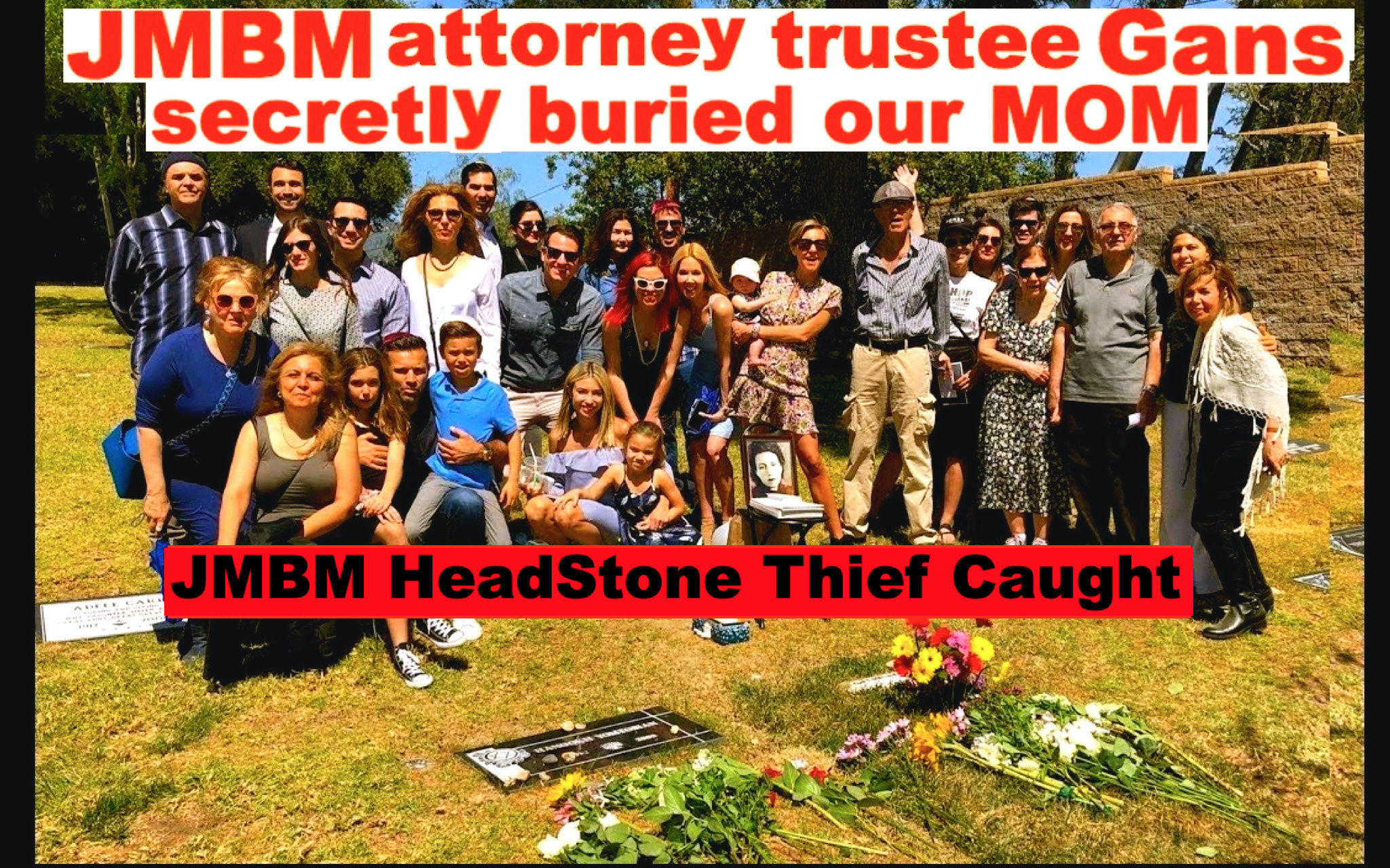Century City Police 90067 Department JMBM attorney Thief Bernard R. Gans Jeffer Mangels Butler & Mitchel LLP JMBM attorney JMBM Partner Gans Strikes Out thief you have 24 hours to place the headstone or we are going to Century City Police department to report your crimes JMBM Partner Bernard Gans practicing Law without a Law License.